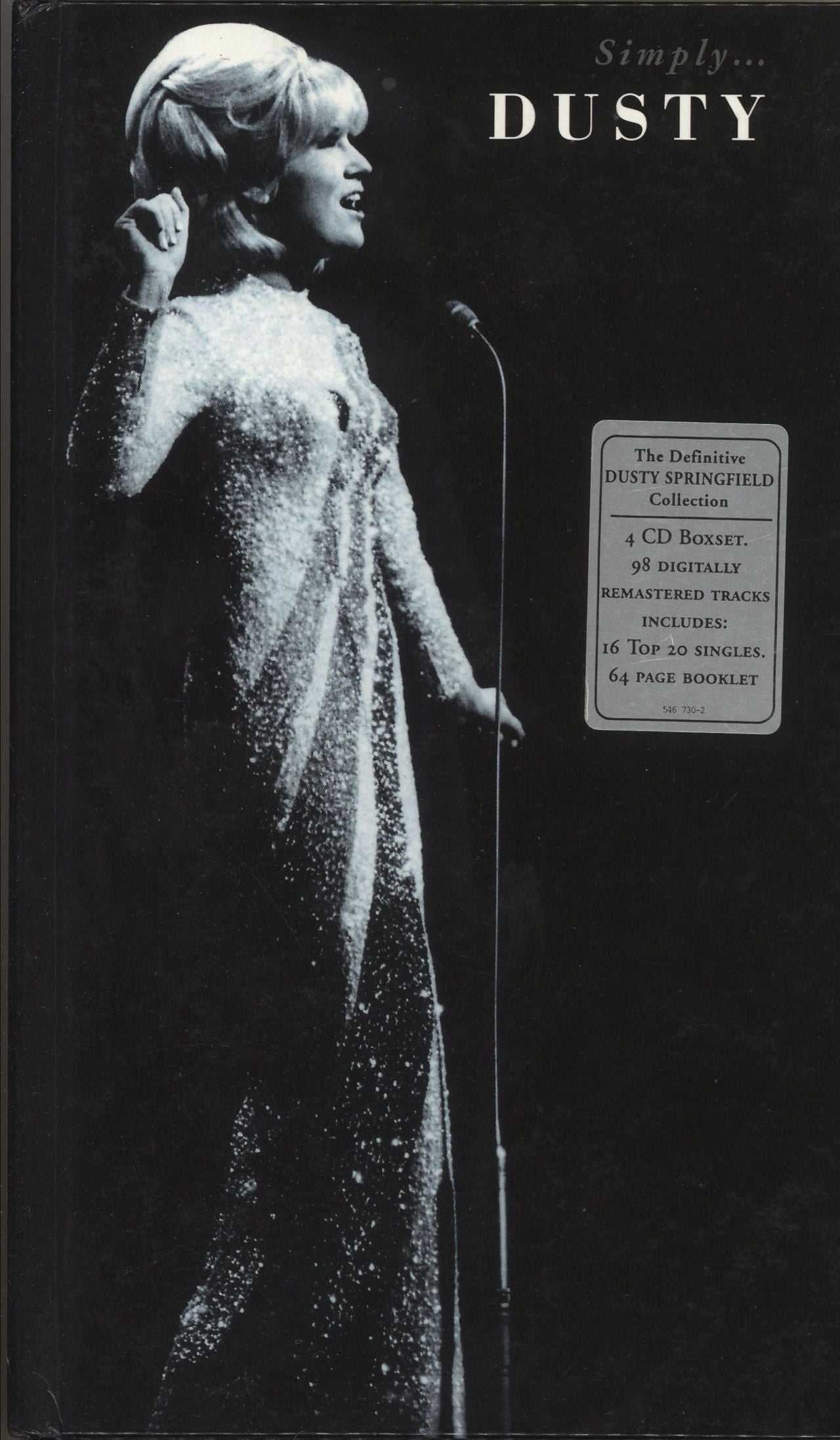 DUSTY SPRINGFIELD Simply... Dusty: The Definitive Dusty Springfield Collection (2000 UK 98-track digitally remastered 4-CD box set, providing the most comprehensive overview of Dusty's work and career including 16 UK Top 20 singles. The four discs have just light evidence of play and come housed in the hype-stickered 6" x 10" digibook complete with the 64-page booklet of notes for each track and stunning archive photos)