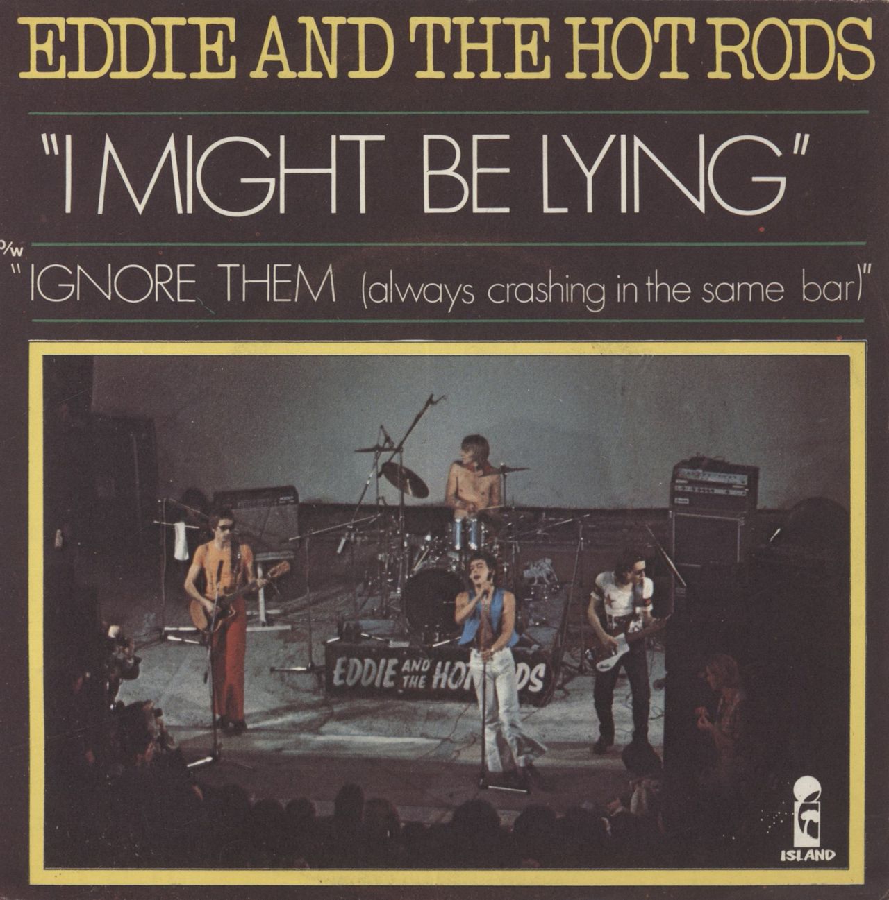 EDDIE AND THE HOT RODS I Might Be Lying (Hard to find 1977 French light blue injection moulded 7" vinyl single, also Ignore Them [Always Crashing In The Same Bar]. This is the first copy of the European pressing that we've ever seen. The unique picture sleeve has a little age discolouration to the back but remains in EX condition while the vinyl appears in lovely condition showing very little evidence of its forty five plus years)