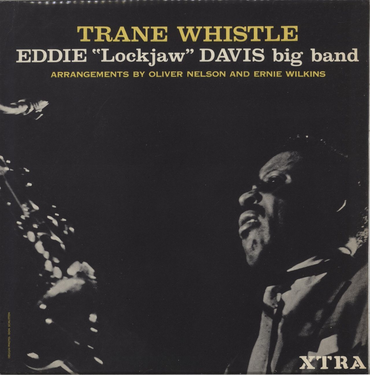 EDDIE 'LOCKJAW' DAVIS Trane Whistle (1967 UK 6-track mono LP on XTRA , also starring Oliver Nelson, Eric Dolphy, Wendell Marshall, Roy Haynes & more, front laminated picture sleeve. The sleeve shows a little light ring wear & a couple of lightstorage marks around the edges yet all text remains legible. The vinyl is clean with just a little spindle or paper scuffs to indicate play - Excellent example)