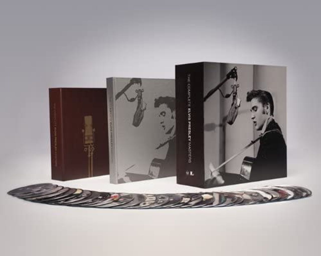 The Complete Elvis Presley Masters limited edition, deluxe set contains 30 CDs with all 711 master recordings released during Elvis' lifetime, sequenced in strict chronological order. Also included are 103 rarities : additional masters, alternate takes, session outtakes, demos, rehearsal jams, home recordings, live performances and radio recordings. This triumph of musicology is the definitive document - a magnificent audio chronicle of the inspiration, pain and genius that make Elvis the world's most enduring musical and cultural icon. Includes a 240-page hardcover book with complete discography.