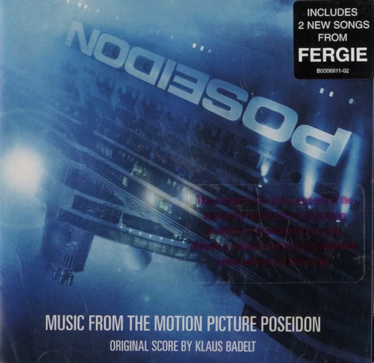 FERGIE/VARIOUS Music From The Motion Picture Poseidon (2006 US 11-track soundtrack CD album featuring 2 tracks performed by Fergie - Won't Let You Fall and Bailamos, plus original score by Klaus Badelt, in a sealed picture sleeve featuring a colour picture of Fergie on reverse. This copy was used for promotional use and has a punch hole through the barcode and promo sticker on the shrinkwrap)