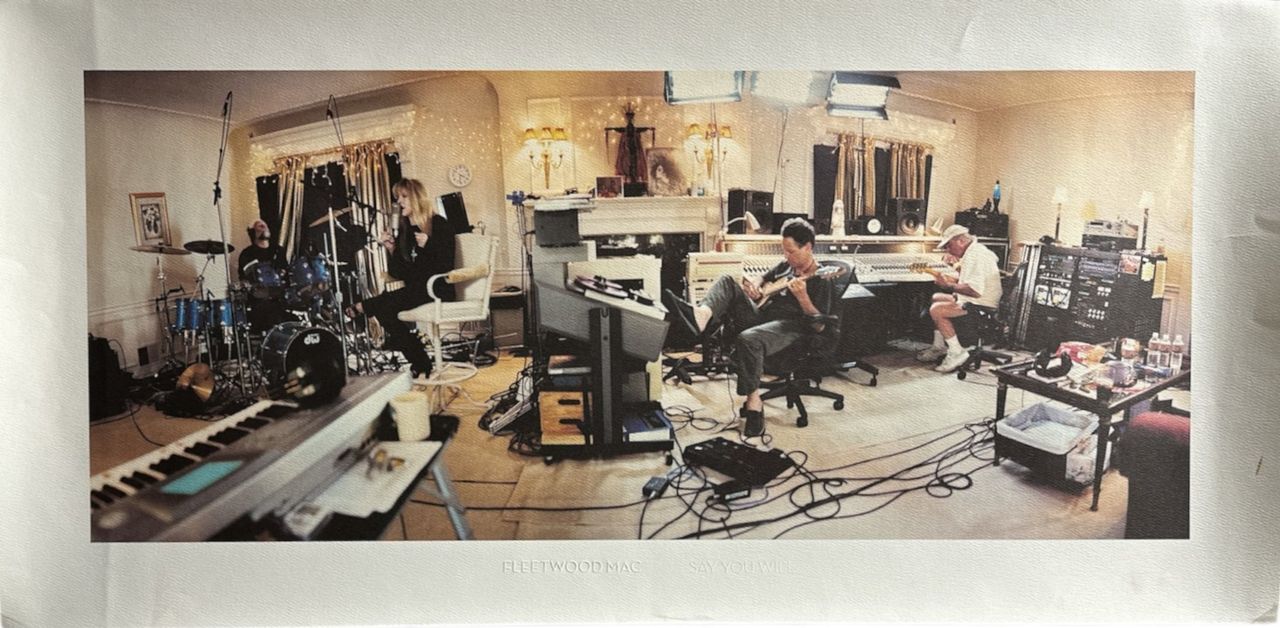 FLEETWOOD MAC Say You Will (Superb 2003 US limited edition promotional 30" x 15" full-colour lithograph featuring a fantastic wide-angle studio shot of the band during the recording of Say You Will. Professionally printed with an embossed Fleetwood Mac logo and Say You Will title along the lower edge, this striking piece is visually impressive and ideal for framing)