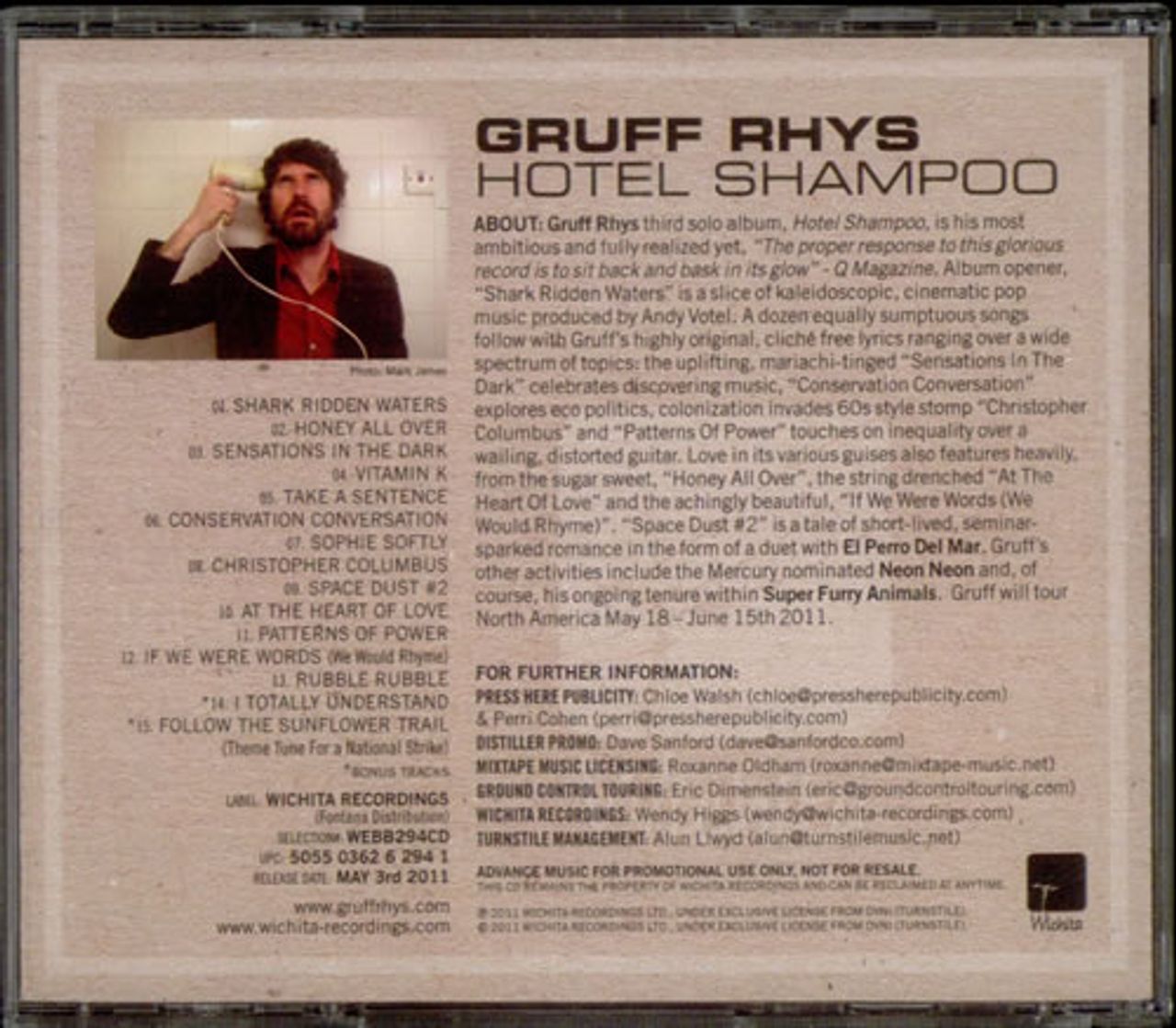 GRUFF RHYS Hotel Shampoo (2011 US 13-track promotional CD of his