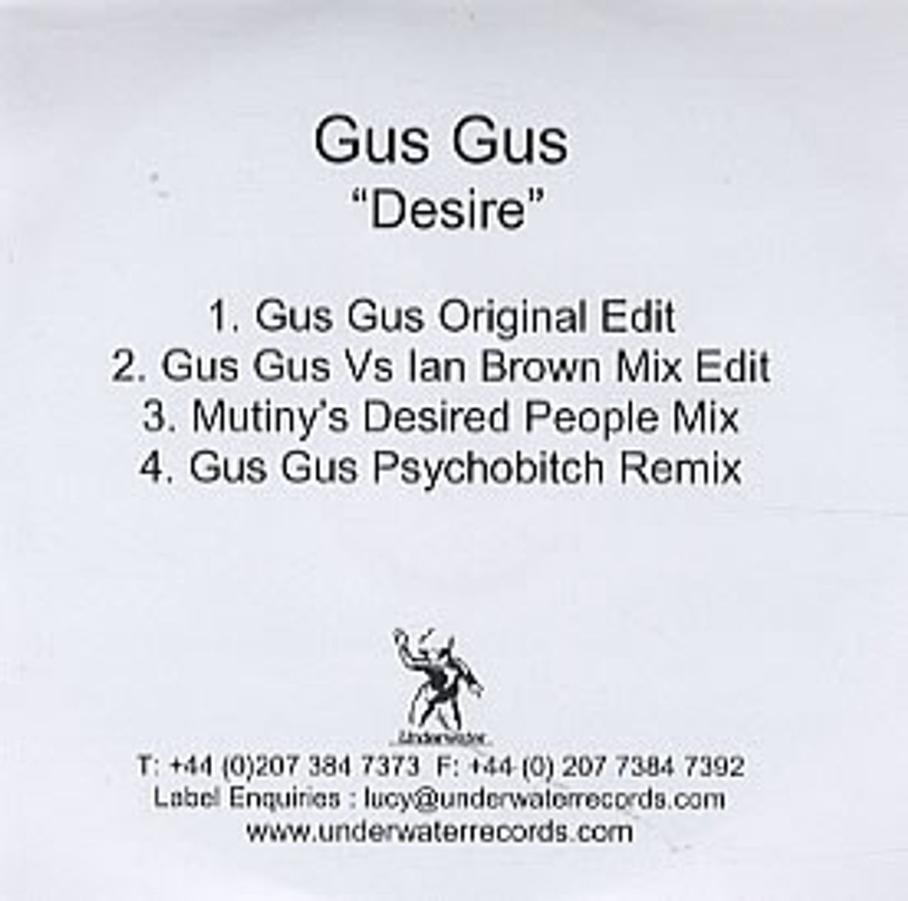 GUS GUS Desire (2003 UK Underwater Records 4-track promotional