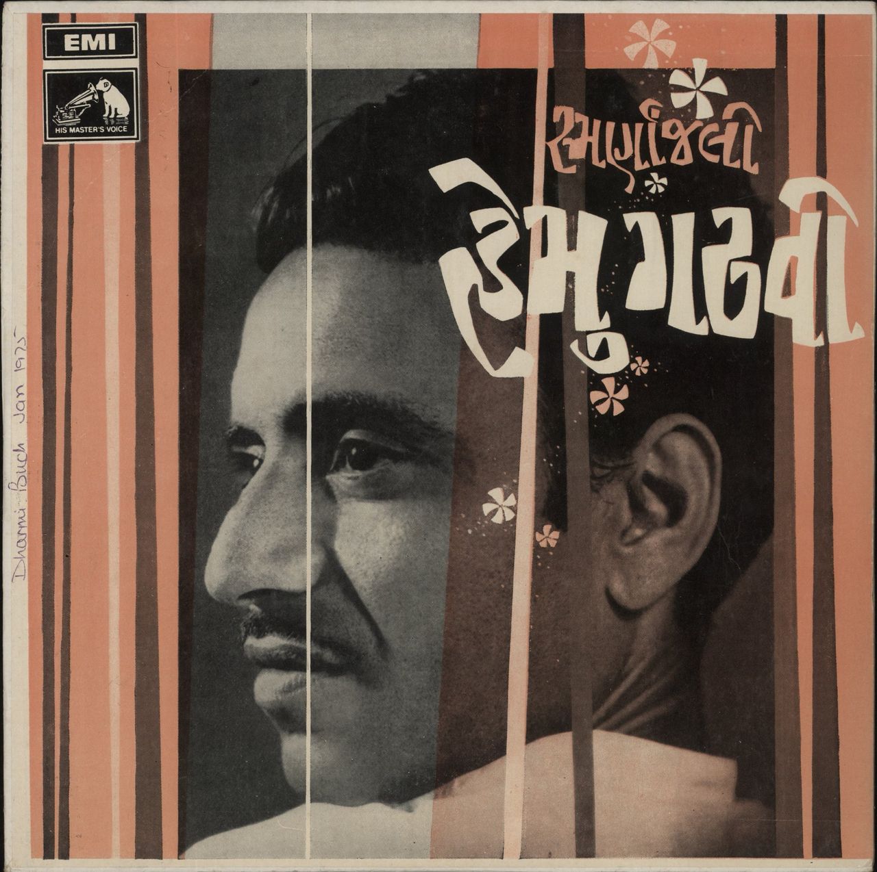 HEMU GADHVI Smarananjali (1969 Indian 11-track vinyl LP, a collection of Gujarati songs, pasted picture sleeve. The sleeve has a name annotation to the front & back and shows just light wear, whilst the vinyl is Excellent with little sign of play ECLP2428)