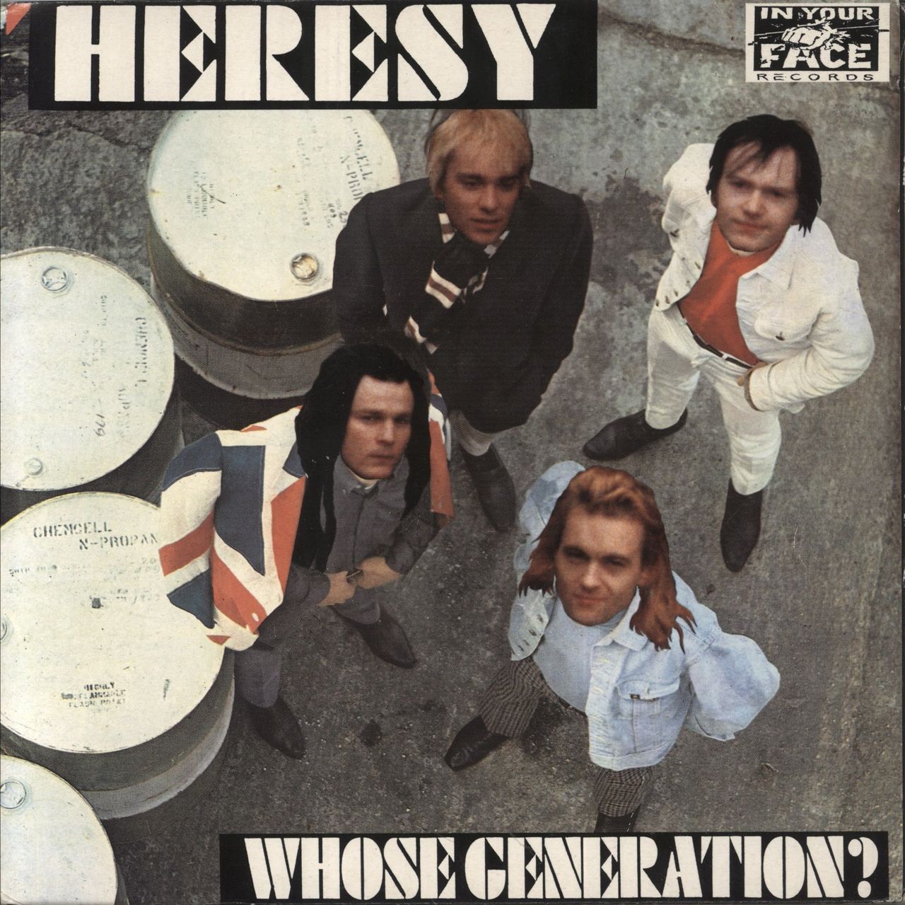 HERESY Whose Generation? (1988 UK 4-trck 7" vinyl EP including Follow Suit, Ghettoised, Them And Us And Me And You & Everyday Madness Everyday, complete with discography insert, gatefold picture sleeve with lyrics inside in great shape with excellent condition vinyl remaining seldom played, nice collectable FACE04)