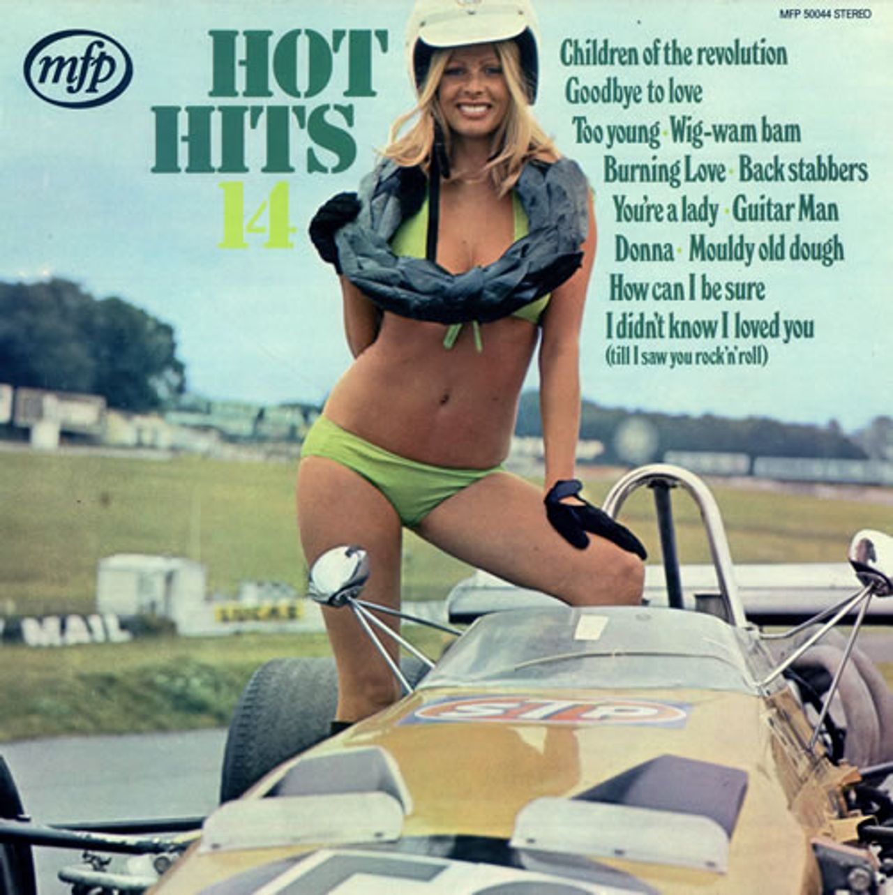 VARIOUS Hot Hits 14 (1972 UK 12-track LP compilation, a collection of hits covered by a faceless cut-price 'soundy-likey' band, rushed to the market in a saucy front laminated picture sleeve. The sleeve & vinyl remain in Excellent condition MFP50044)