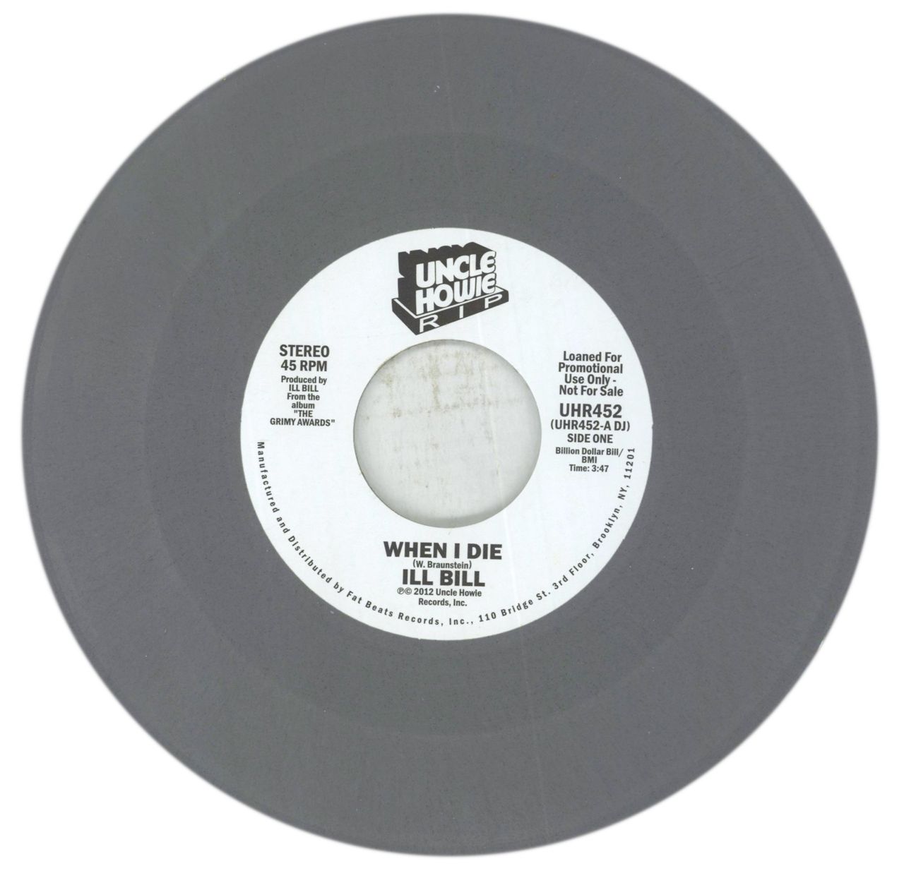 ILL BILL When I Die (2013 Limited edition US 7" vinyl single with wide-centre, pressed on Grey Vinyl. Also featuring the Pete Rock remix on the B-side. Housed in a plain barcode stickered die-cut sleeve. The vinyl remains in Near Mint condition - Limited to 500 copies)