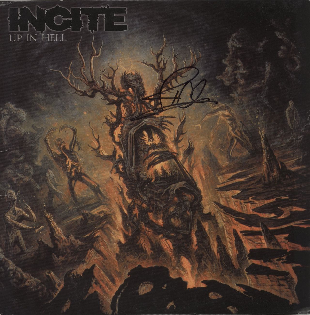 INCITE Up In Hell (2014 US 10-track vinyl LP. The third studio album from American heavy metal band. Picture sleeve with lyric insert. The front of the sleeve has been Autographed by Richie Cavalera and shows some minor edge wear. The vinyl is Excellent with only light signs of play and handling)