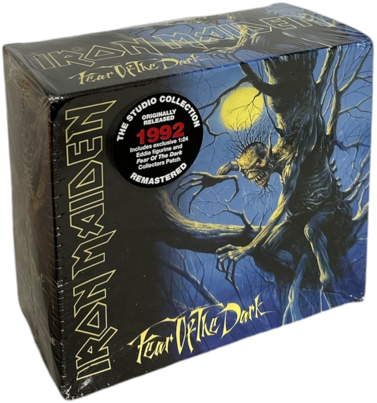IRON MAIDEN Fear Of The Dark (2019 UK Deluxe Edition boxset comprising the remastered CD edition of their 12-track 1992 ninth studio album including the singles Be Quick Or Be Dead, From Here To Eternity and Wasting Love. The disc sits insideits own digipak picture sleeve within the sealed & stickered 6" x 5" x 2" boxset, complete with an exclusive 1:24 Eddie figurine and Collectors Patch. The box has slightly crushed, but as already mentioned is still sealed!)