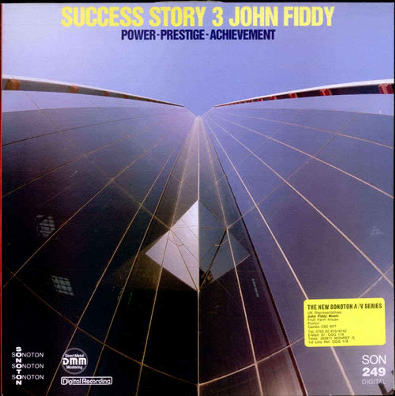 JOHN FIDDY Success Story 3 (Early 80s German Direct Metal Mastered 23-track non-commercial LP of dynamic fanfares, themes and underscores for large Orchestra and contemporary rhythm, on themes of Power, Prestige and Achievement. Issued as part ofthe Munich based Sonoton library and in small quantities. The picture sleeve is custom stickered with details of Sonoton's UK representative and composer Fiddy. Despite a 2" split in the top edge, the sleeve is otherwise immaculate and the vinyl mint SON249)