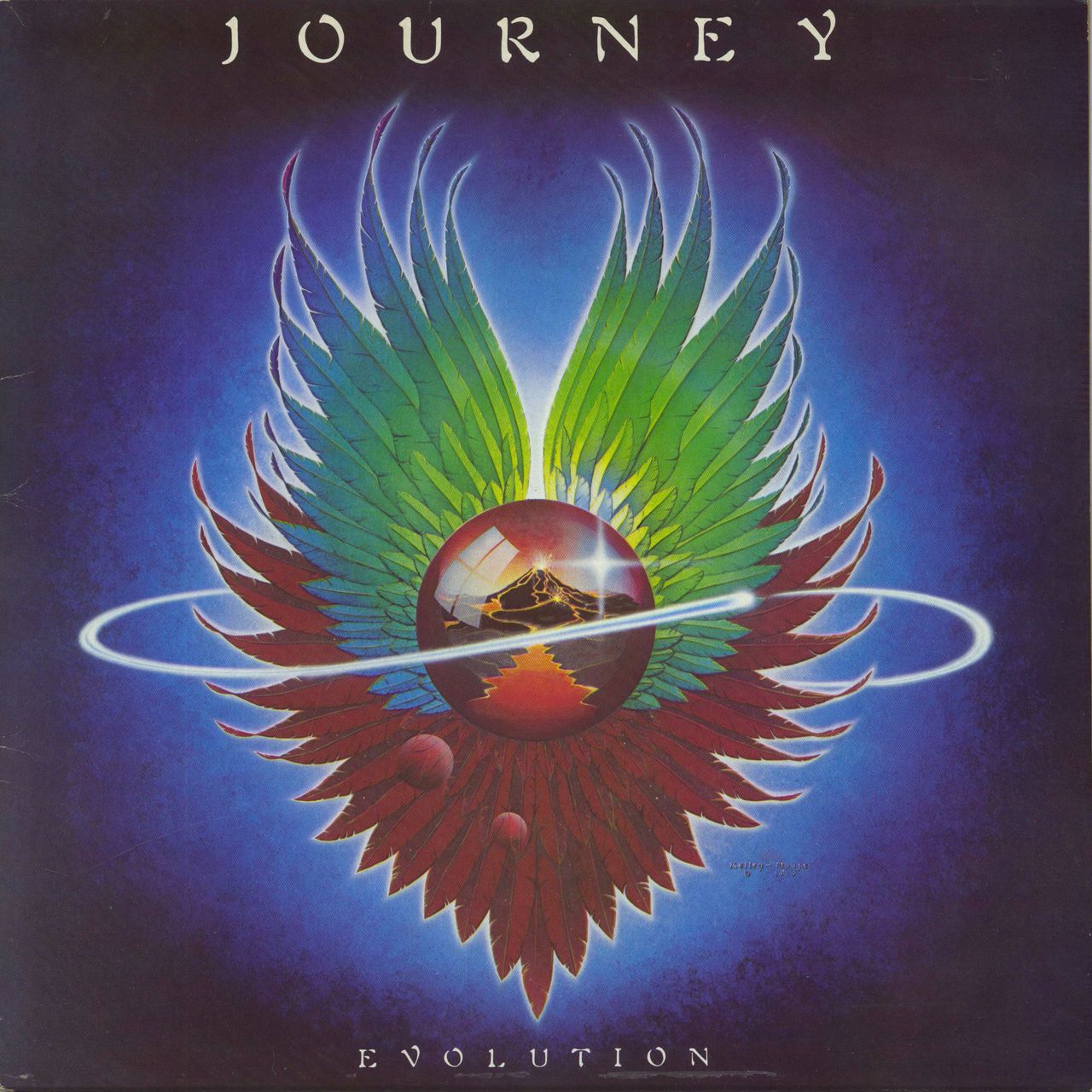 JOURNEY Evolution (1980s UK 11-track CBS graduated orange label vinyl LP, housed in a glossy picture sleeve with Nice Price inner. The sleeve has only light edgewear and the vinyl is in near mint condition)
