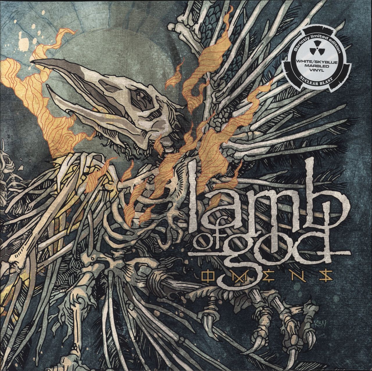 LAMB OF GOD Omens (Limited Edition 2022 UK/EU 10-track LP pressed on Heavyweight White & Sky Blue Marbled Vinyl, the ninth album from the US heavy metallers which was produced by their long-time collaborator Josh Wilbur. Comes housed in a deluxe & hype stickered gatefold picture sleeve with the fold-out lyric insert. Near Mint)