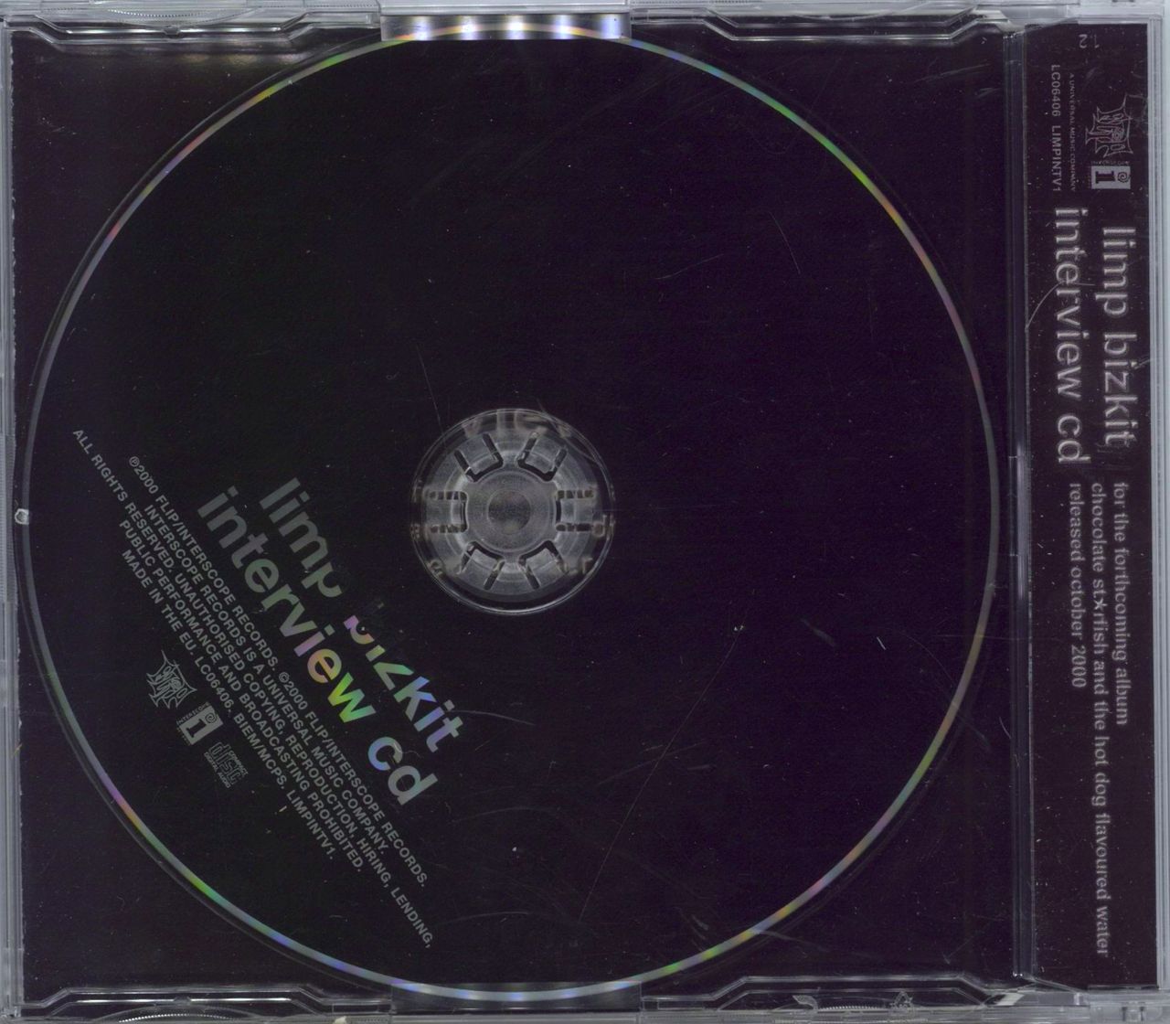 LIMP BIZKIT Interview CD (2000 Interscope UK promotional only CD issued to promote the album Chocolate Starfish And The Hot Dog Flavoured Water with over 20 minutes of dialogue. Only distributed to radio and never commercially available, complete with its original custom picture sleeve LIMPINTV1)