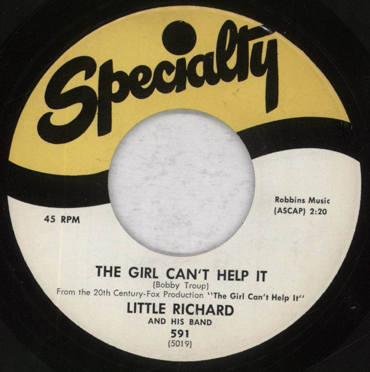 LITTLE RICHARD The Girl Can't Help It (70s US wide centred 7" single first released in 1956, also featuring 'All Around The World', plain die-cut sleeve. The vinyl remains clean & in Excellent condition)
