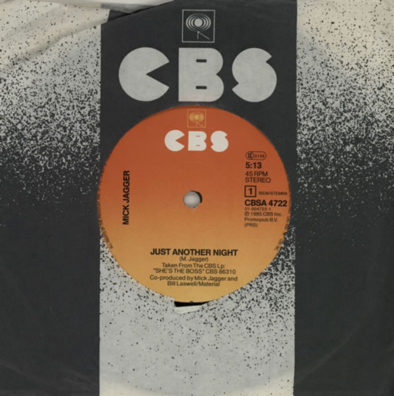 MICK JAGGER Just Another Night (1985 Dutch solid centre 7" vinyl