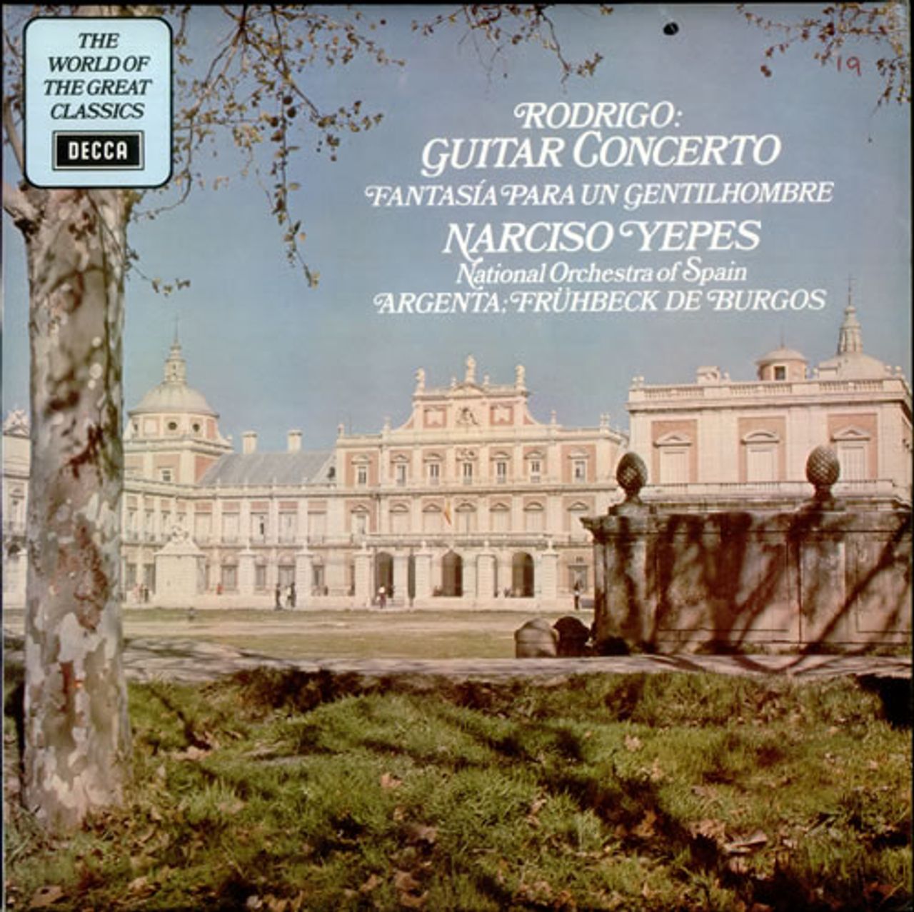 NARCISO YEPES with THE NATIONAL ORCHESTRA OF SPAIN conducted by ATAULFO ARGENTA & RAFAEL FRÜBECK DE BURGOS Rodrigo: Guitar Concerto 'Concierto De Aranjuez' & Fantasia Para Un Gentilhombre (1972 UK Stereo LP issue of the 1959 & 1963 performances, front laminated picture sleeve. The sleeve shows just a little light shelfwear & the vinyl remains in excellent condition with just a few light surface scuffs to show for nearly fifty years SPA233)