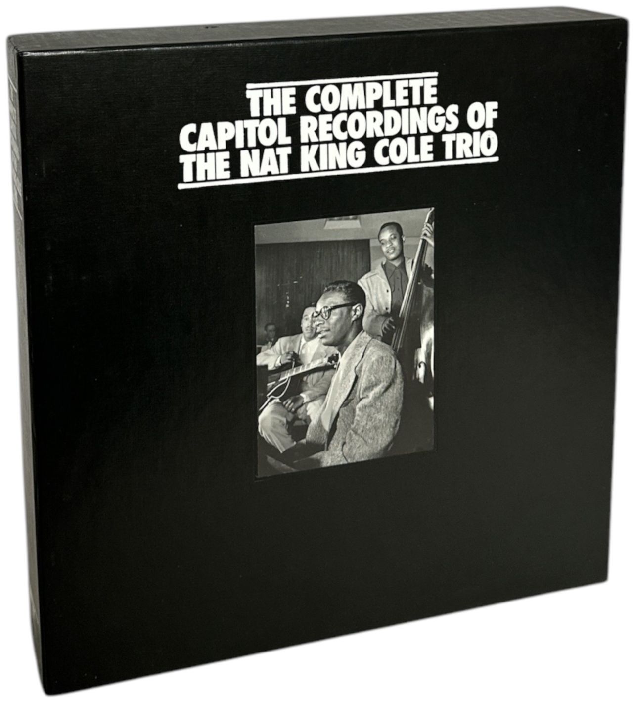 NAT KING COLE The Complete Capitol Recordings Of The Nat King Cole Trio (Limited Edition 1991 US Mosaic audiophile EIGHTEEN CD Box Set, compiling all of the Nat King Cole Trio's recordings on the Capitol Records label, including previously unreleased material & alternate takes. The discs are housed between four fat double jewel cases & two album jewel cases with their respective picture inlays, beautifully mounted in two separate flip-top boxes in robust plastic backing trays, allkept in a textured & pasted picture box complete with a 64-page booklet featuring stunning black & white session photographs. The booklet is unnumbered & shows light signs of handling with some writing on the inside left page from its one former owner. The packaging is Excellent with a few light scuffs from shelf wear & all eighteen discs are unplayed, sealed & unopened)