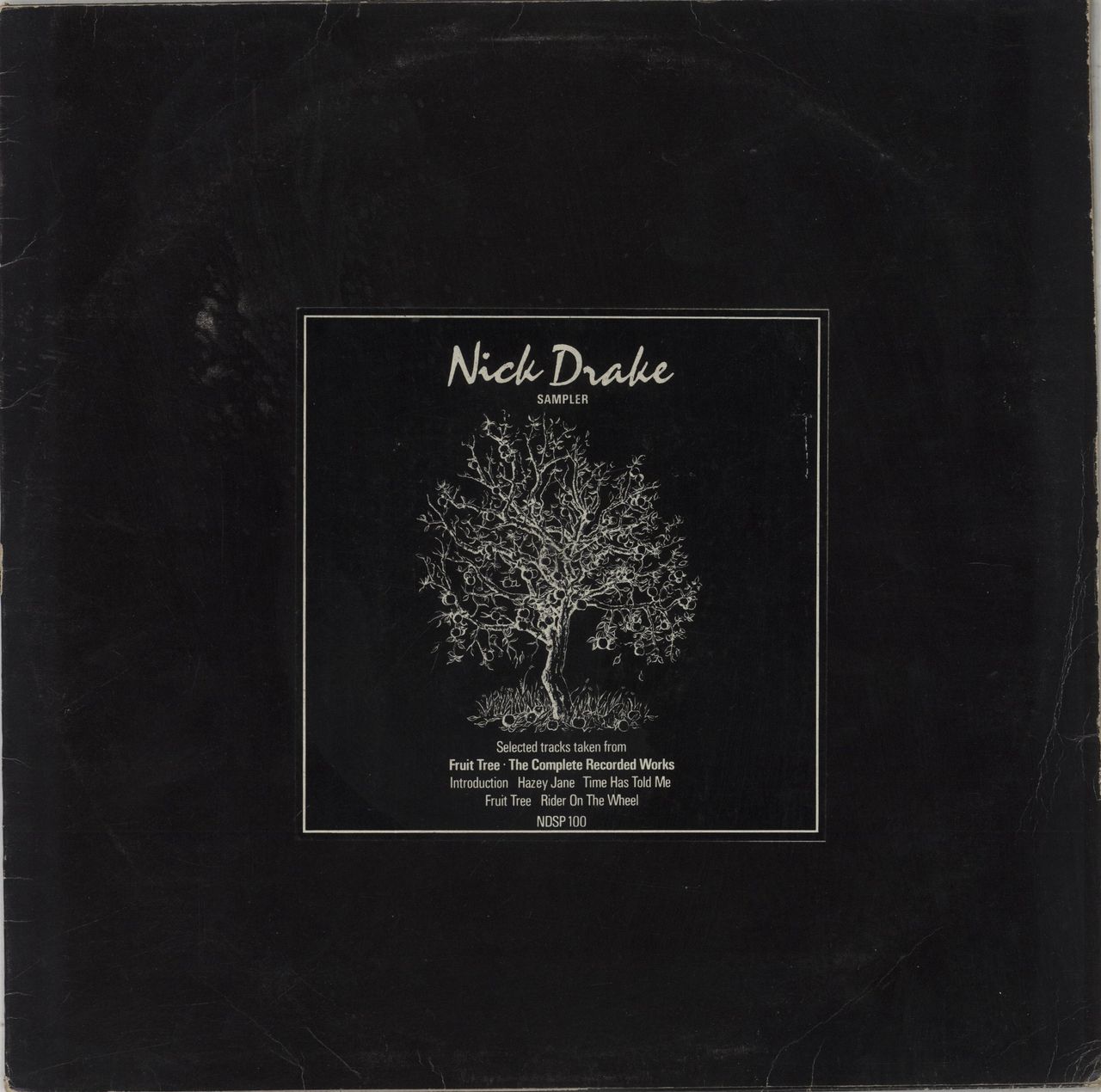 NICK DRAKE Sampler - Extracts From 'Fruit Tree' (Very Rare 1979 UK 5-track single sided promotional 12" vinyl sampler for the original issue of the 'Fruit Tree' box set, featuring Introduction, Hazey Jane II, TimeHas Told Me, Fruit Tree and Rider On The Wheel, plain sleeve with custom picture / tracklisting sticker carrying the catalogue number of the box set [NDSP100], the label and matrix number is RSS7. The sleeve shows some noticable discolouration a bit of edge scuffing whilst the vinyl remains in excellent condition with just a few light surface scuffs to show for over forty five years)