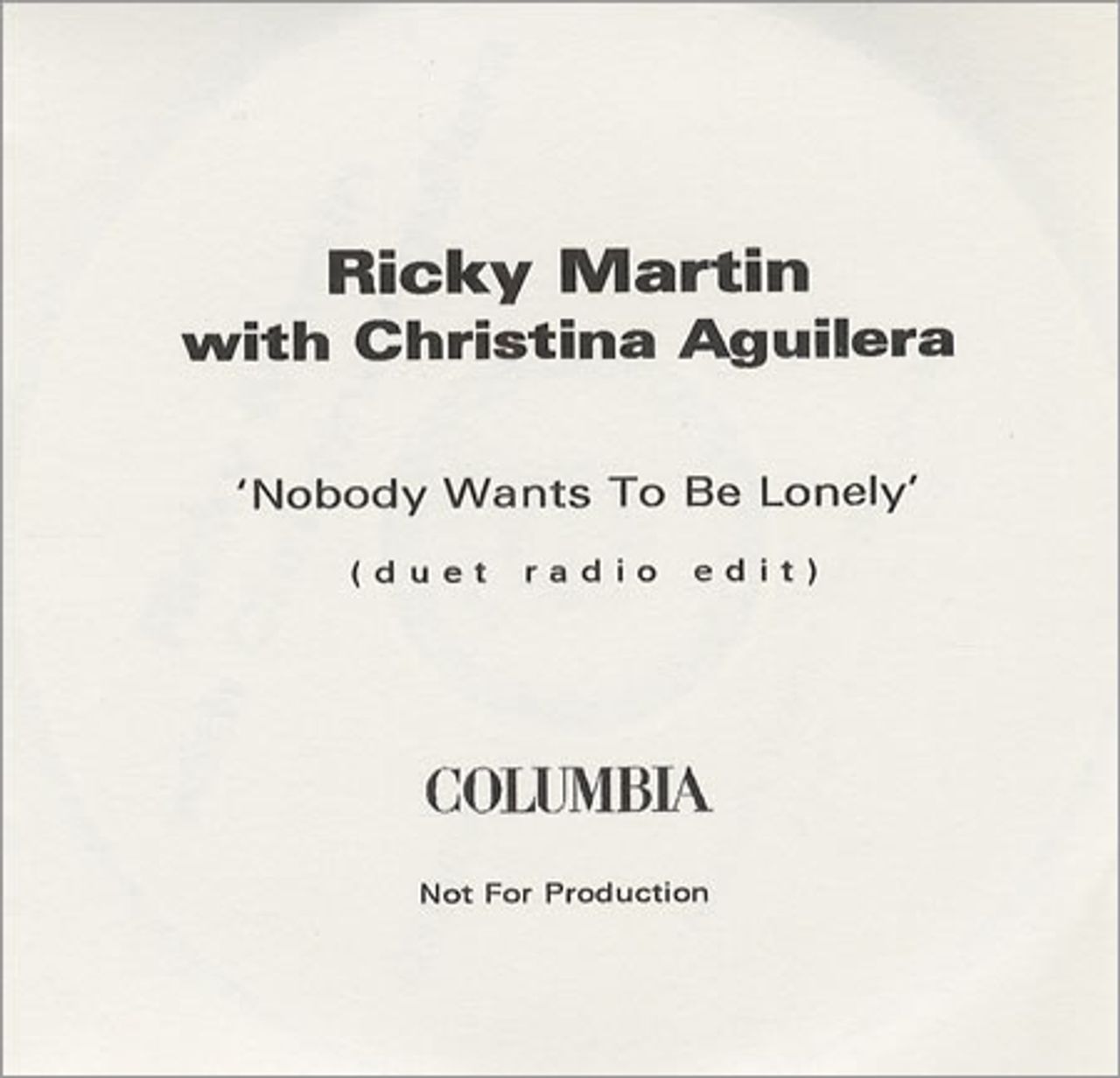 Ricky Martin Nobody Wants To Be Lonely Acetate UK Promo CD-R acetate