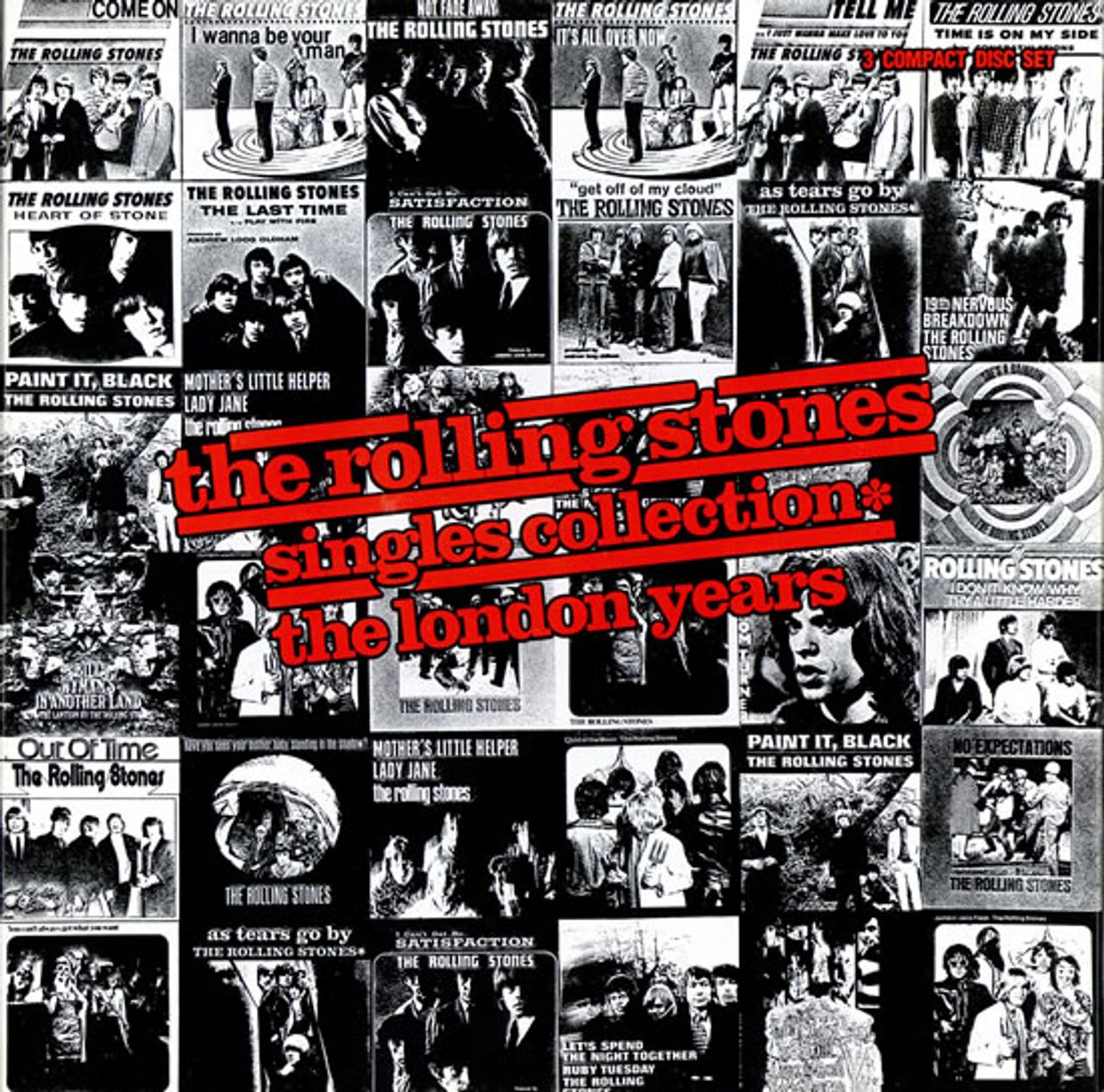 ROLLING STONES Singles Collection - The London Years (Rare 1989 limited edition German-pressed issue 58-track triple CD box set, each disc is housed in a jewel case with their own picture sleeve & back inlay, along with a 72 page booklet and housed in a 12" square picture box with barcode sticker on reverse)