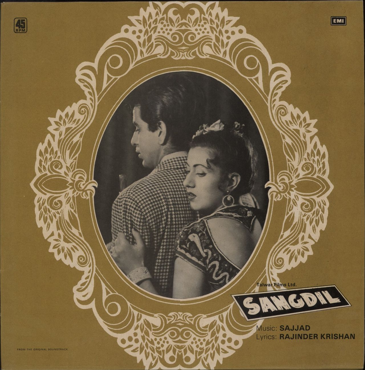 ORIGNAL SOUNDTRACK Sangdil (1982 Indian 6-track vinyl LP, Sajjad's movie score includes performances by Lata Mangeshkar & Talat Mahmood, picture sleeve. The sleeve shows moderate wear and the vinyl is Excellent & appears barely played 45NLP1190)