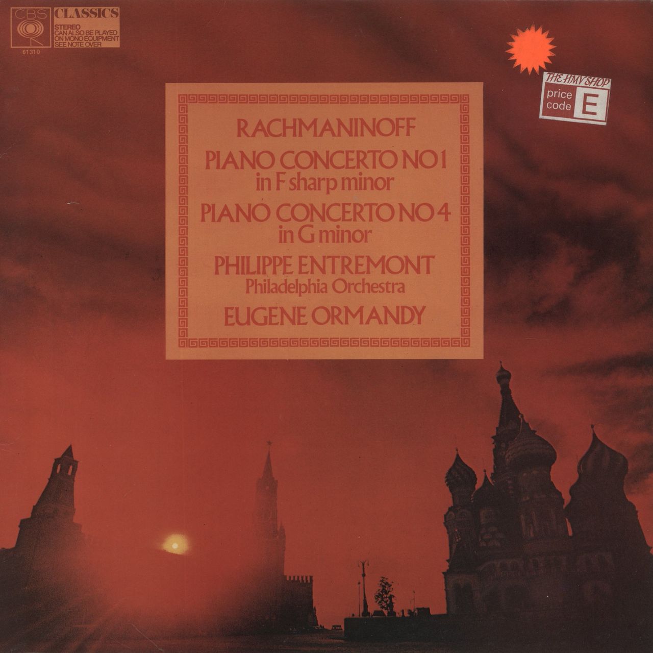 PHILIPPE ENTREMONT with the PHILADELPHIA ORCHESTRA conducted by EUGENE ORMANDY Rachmaninov: Piano Concerto No 1 In F Sharp Minor / Piano Concerto No 4 In G Minor (1970s UK 2-track stereo vinyl LP, picture sleeve with vintage price point stillin place. The sleeve shows minimal wear and the vinyl is Near Mint)