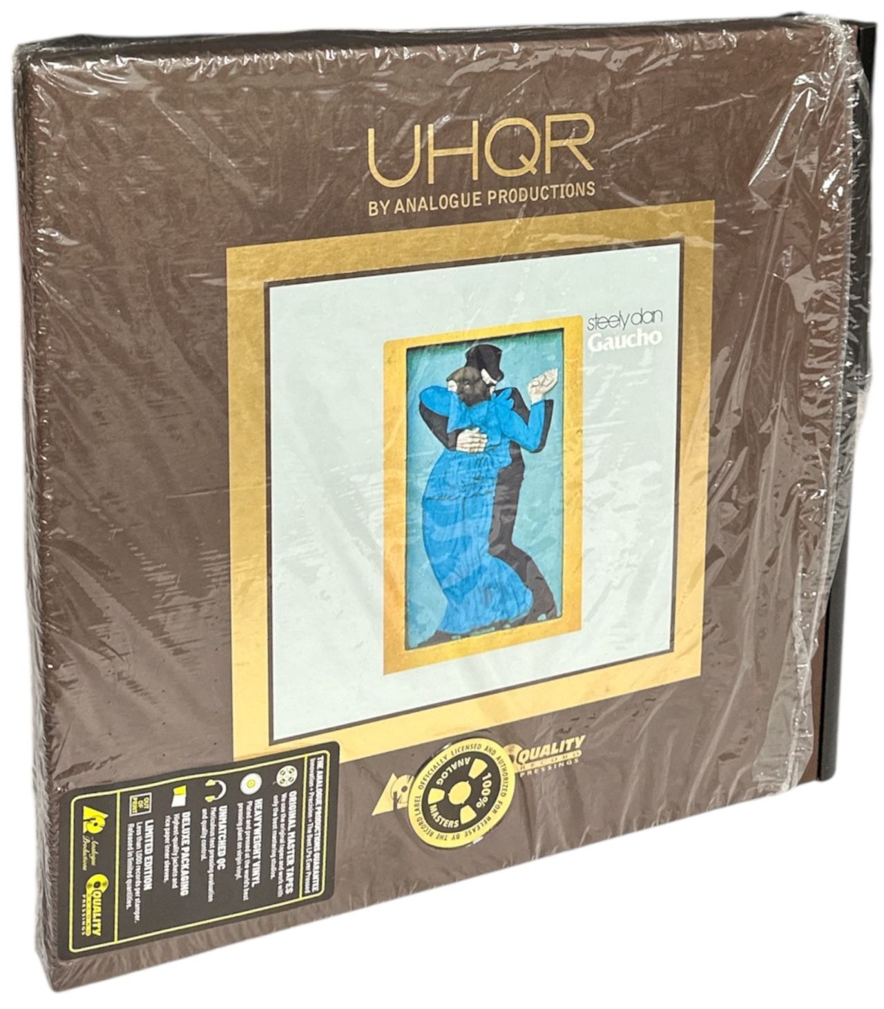 STEELY DAN Gaucho (2024 US UHQR limited edition 2×12" 45 RPM double LP on 200-gram Clarity Vinyl®, Analogue Productions – one of the finest reissues in the UHQR series. Mastered by Bernie Grundman from a 1980 analog tape copy originally EQ’d by Bob Ludwig, pressed at Quality Record Pressings. Housed in a full-colour tip-on old-style gatefold double-pocket jacket with film lamination by Stoughton Printing, inside a textured slipcase with leatherette dowelspine and gold-foil stamped numbering. Limited to 20,000 numbered copies. Although not sealed, both the box and its contents remain Near Mint, still in its original open shrink. Highly recommended UHQR0015-45)