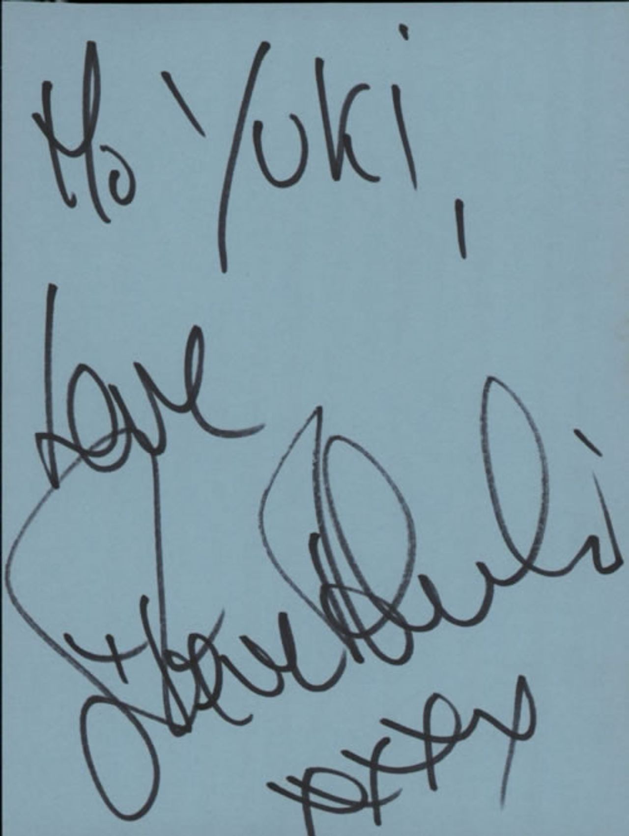 Signatures were obtained by Yuki Smythe-Park. For many years Yuki's husband Colin, was Eric Clapton's assistant tour manager, working on many of his 1980s concerts & tours. On August 26th 1990, Clapton played the Alpine Valley Music Theatre, Wisconsin, alongside Stevie Ray Vaughan & Double Trouble, Robert Cray and Buddy Guy. Following the show Colin Smythe, along with Clapton's agent Bobby Brooks, his bodyguard Nigel Browne and Stevie Ray Vaughan boarded a helicopter bound for Chicago. Tragically, the helicopter crashed shortly after take-off, killing all on board. Yuki was friends with many artists from that era and continued to attend gigs and fill her numerous autograph books. This signature was obtained in person by Yuki.