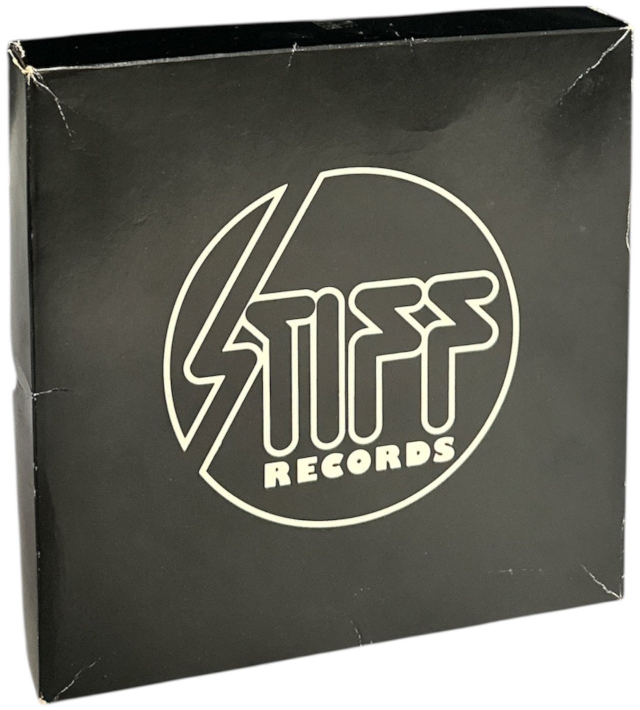 VARIOUS Stiff Records - Volume 1 (1978 UK 1st issue box set featuring TEN vinyl 7" singles including The Damned singles 'New Rose' [BUY6] and 'Neat Neat Neat' [BUY10], plus others from Nick Lowe, The Pink Fairies, Roogalator, Tyla Gang,Lew Lewis,Richard Hell, Plummey Airlines and Motorhead. Each part in its respective flipback picture sleeve [the Tyla Gang & Nick Lowe are die-cut sleeves], all housed in a blackbox with a white Stiff Records logo on the lid complete with track details insert. The delicate box has survived very well and displays only some light wear with a small split only in one corner. Much better condition then they are normally found. The sleeves & vinyl discs grade Excellent to Near Mint with few signs of handling or play)