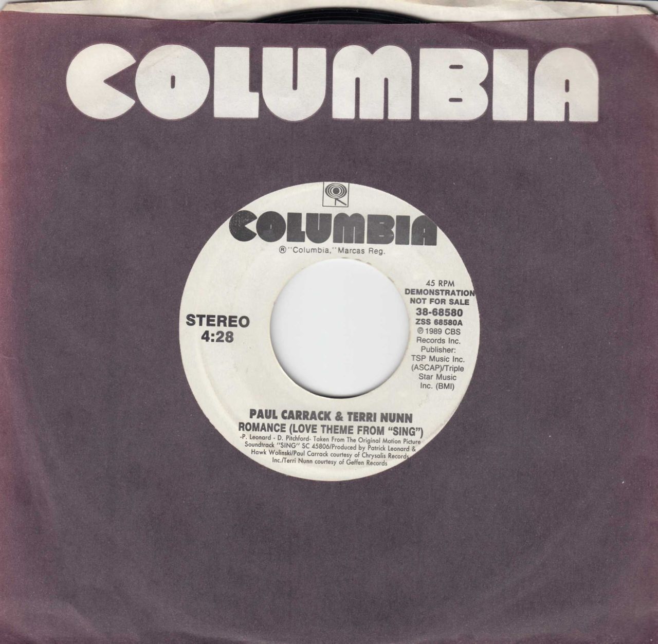 label demonstration vinyl 7", the love theme from the Sing movie,
