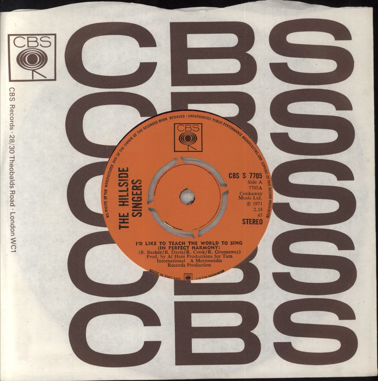 The Hillside Singers I'd Like To Teach The World To Sing (In Perfect Harmony) UK 7" vinyl