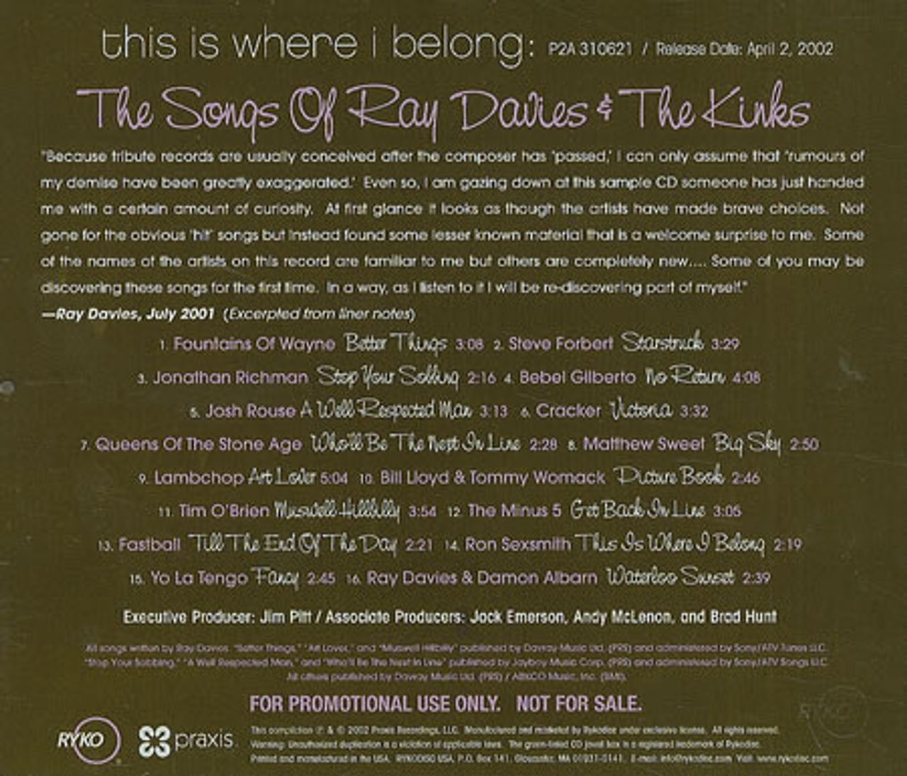 THE KINKS/VARIOUS This Is Where I Belong: The Songs Of Ray
