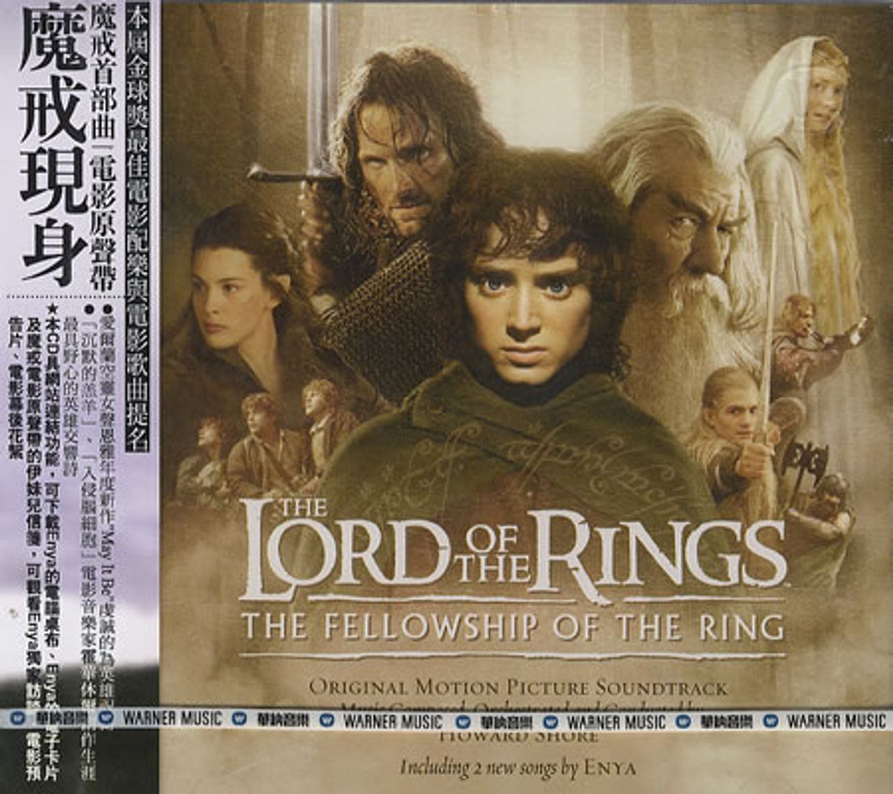 ORIGINAL SOUNDTRACK The Fellowship Of The Ring (2001 Taiwanese 18-track CD featuring music composed, orchestrated and conducted by Howard Shore plus 2 tracks composed and performed by Eithne Ní Bhraonáin ['The Council OfElrond featuring Aniron' and the single release 'May It Be'], sealed with unique wrap-around obi-strip)