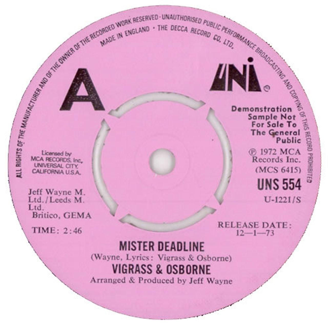 VIGRASS & OSBORNE Mister Deadline (1972 UK 'A' label
