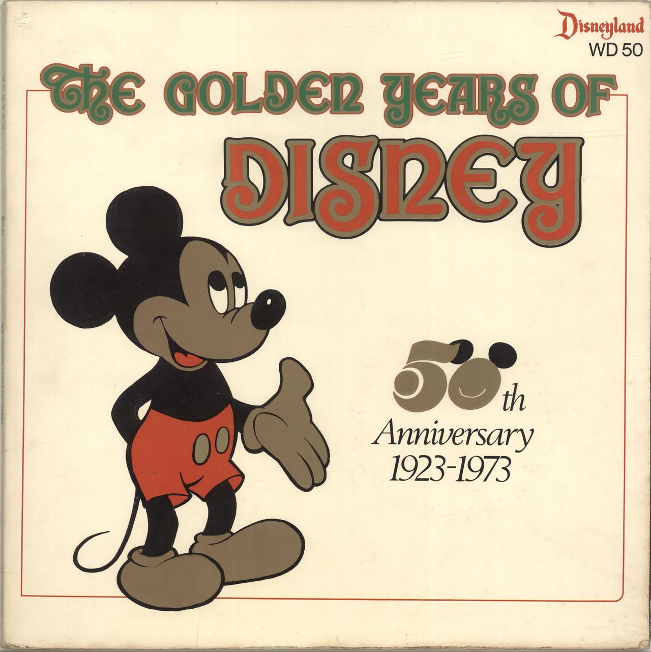 DISNEY The Golden Years Of Disney - 50th Anniversary Album 1923-1973 (1973 UK Disneyland Records limited edition 20-track stereo LP featuring classic original songs from the movies by the original artists including Louis Armstrong, Julie Andrews,Maurice Chevalier, Phil Harris, Tommy Steele & more, superb embossed gatefold picture sleeve. The sleeve has some minor storage wear with a small point of paper loss to the top corner and a few spots of foxing, whilst the vinyl shows littlesign of play WD50)
